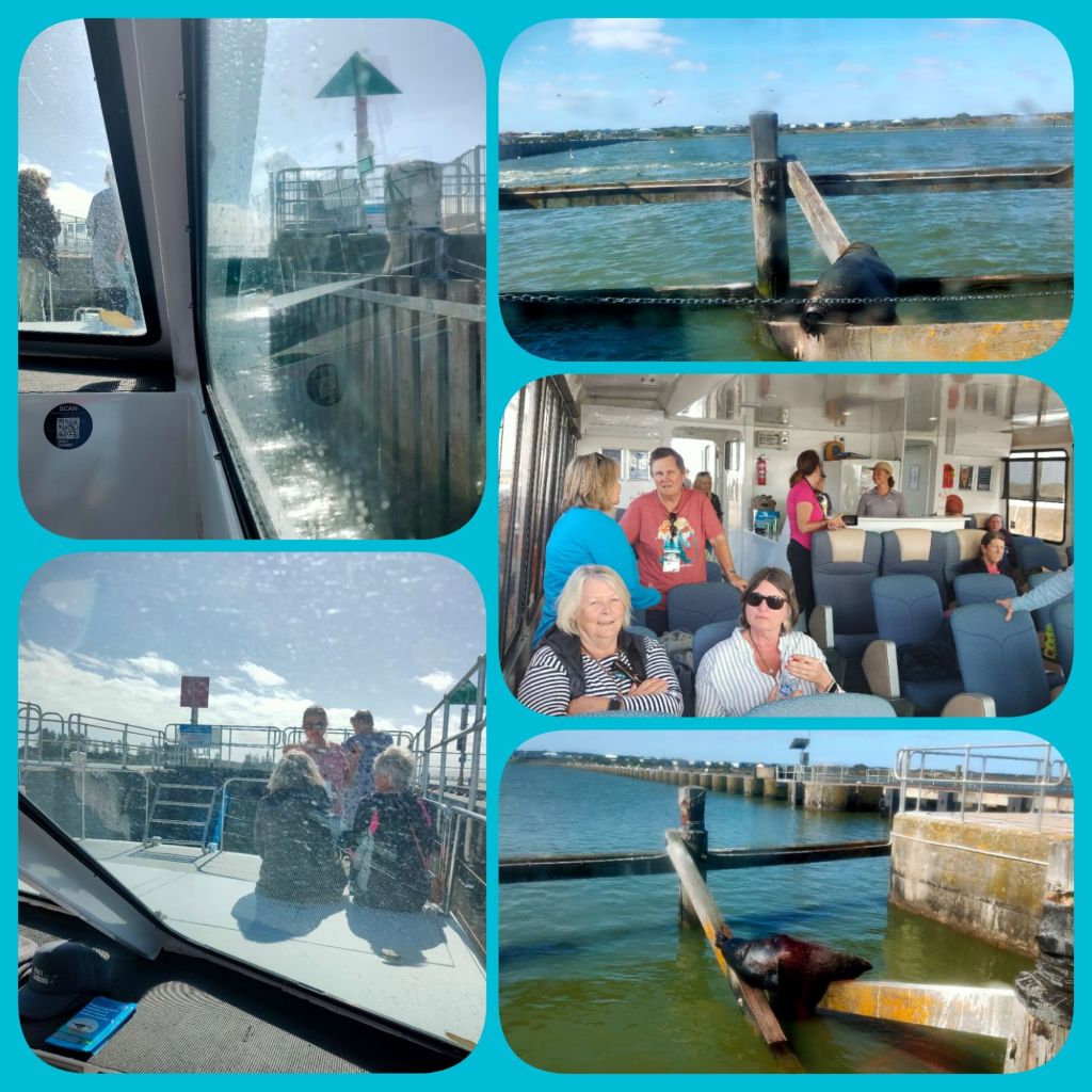 Coorong River cruiseThe head of the Murray River where it meets the sea.2 dredges work constantly to control the sand building up.Going through the lock. The two seals pictured are regulars, sunning themselves and posing for tourists.My birthday was low key this year. I had been away the whole day on The Kangaroo Island trip so hadn’t said anything. You couldn’t imagine how surprised I was when this gift box was delivered my van. The card even matched my latest artistic attempt ( another story). My family are so very special. Thank you Lovelies.