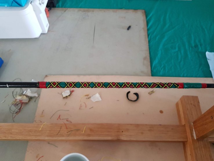 Paul has taken on the project of making up the two blanc fishing rods that he and Chris were going to do together. They had both been out and purchased all the binding cotton, glue/varnish, handle, runners and reels. The kids found it interesting but most of the work was done at night after they had gone to bed. I must say that he did an amazing job. But I wasn’t expecting to be the recipient of the second rod. It is to have a place in the campervan.