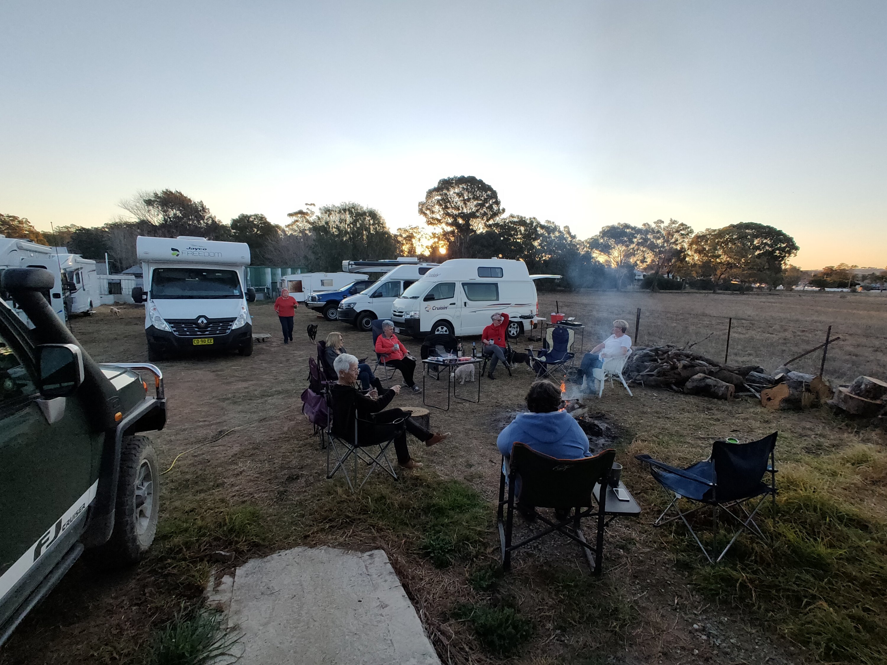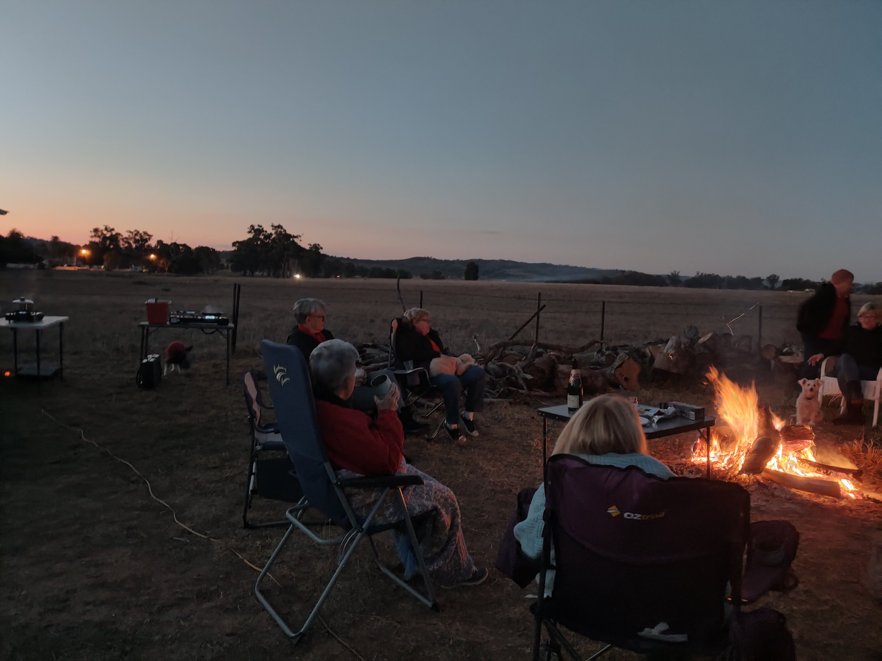 It was good to meet familiar as well as new faces over the weekend. Planning continues for the 4 week journey to Exmouth. Lots of talking and sharing of experiences. Our shared meal on Saturday night was an amazing assortment of dishes and too much food. Sitting around the huge open fire kept us warm on a very cold evening. I slept really well in the van. Woke to -4°