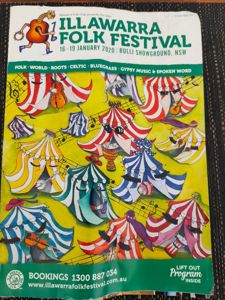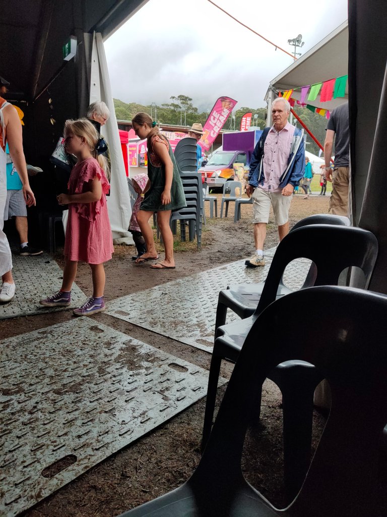 After a 2 year hiatus I volunteered for the Illawarra Folk Festival, this time I was on Traffic. Nothing like broadening one’s horizon. I saw lots of familiar faces in the crowd over the four days. It was hard to know if they were faces from the past or recent people who had come through the entrance gate. Thursday was the bad weather day with 70 mm of rain, mainly overnight, which created boggy areas and puddles.