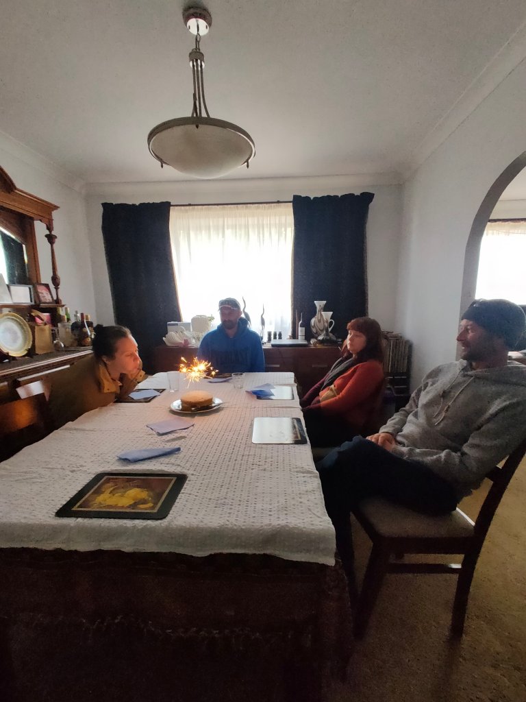 Quiet family gathering for Robyn’s birthday. Note sparklers in these changing times. Weather changing, I know Robyn will like these.