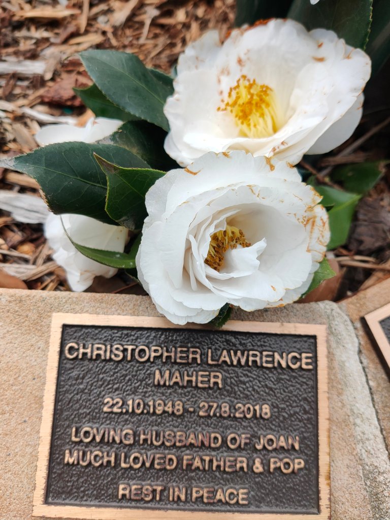 I don’t frequent Chris’s resting place on a regular basis although it’s good to have a place to come. I cherish what we had in my daily surroundings with everyday reminders of the life we shared, along with our treasured memories. I see that there is a recent plaque next to his now. Only two people visiting here in this section of the gardens and would you believe it’s the husband of Chris’s neighbour. I was initially annoyed that there wasn’t enough room for my flowers because all the floral tributes on his wife’s space encroached our space! We chatted as you do and he definitely puts me to shame with his twice a day visits.
