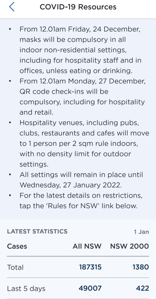 It’s so good to be able to venture out further than LGAs. Be it in a cautious and tentative manner not wanting to get caught in the initial rush. Mask wearing remains a necessity/recommendation for public/crowded areas. The biggest deterrent ATM is the weather. La Nina is now official and large parts of the country are experiencing heavy rainfall and flooding. SES are extremely busy and Robyn is doing extra shifts.