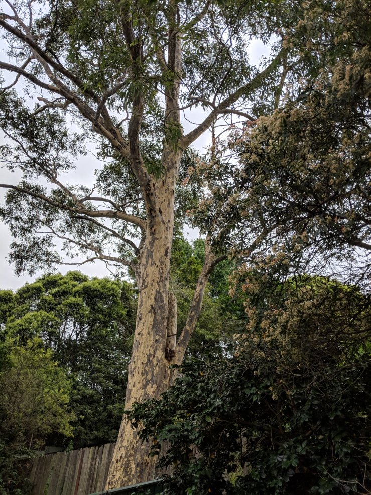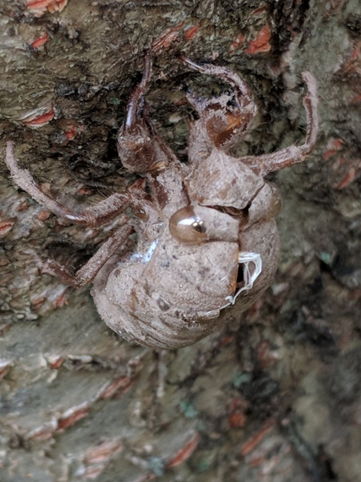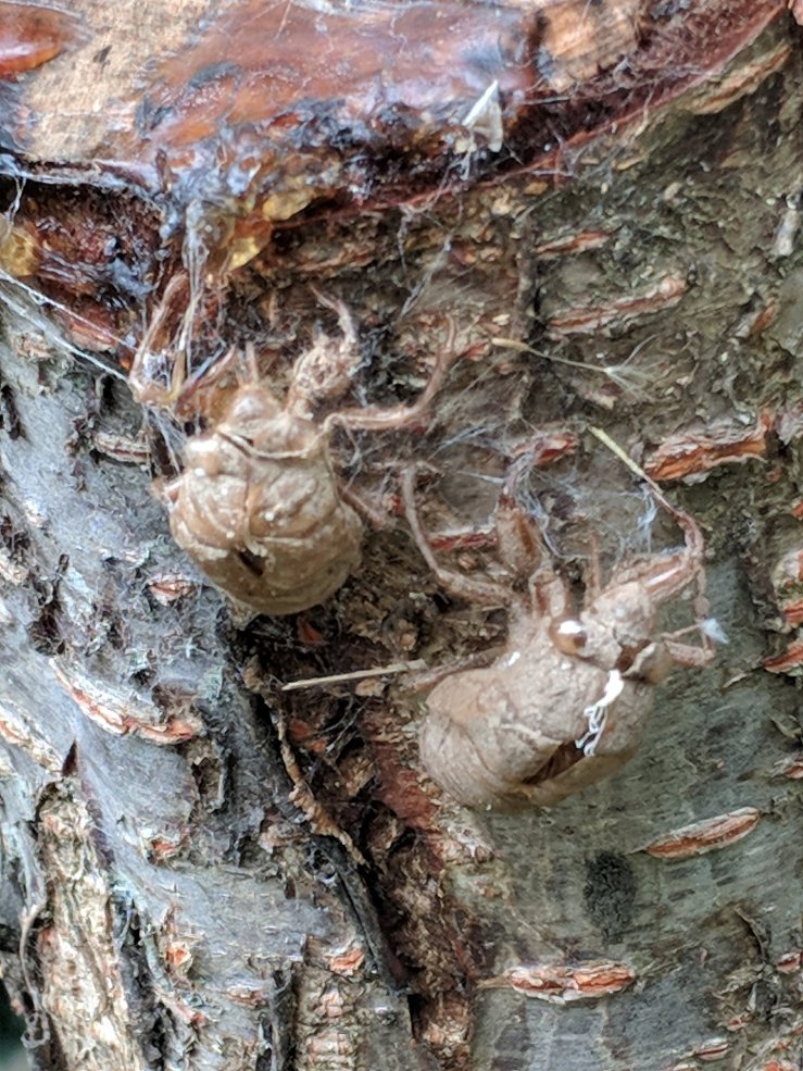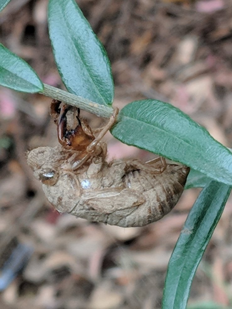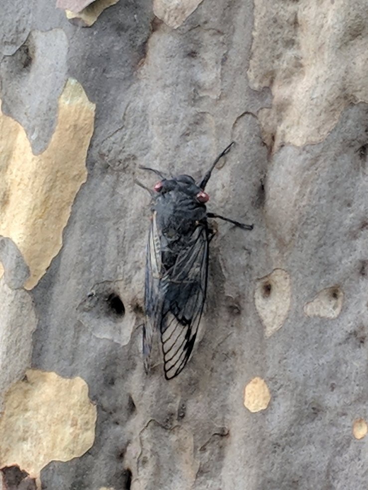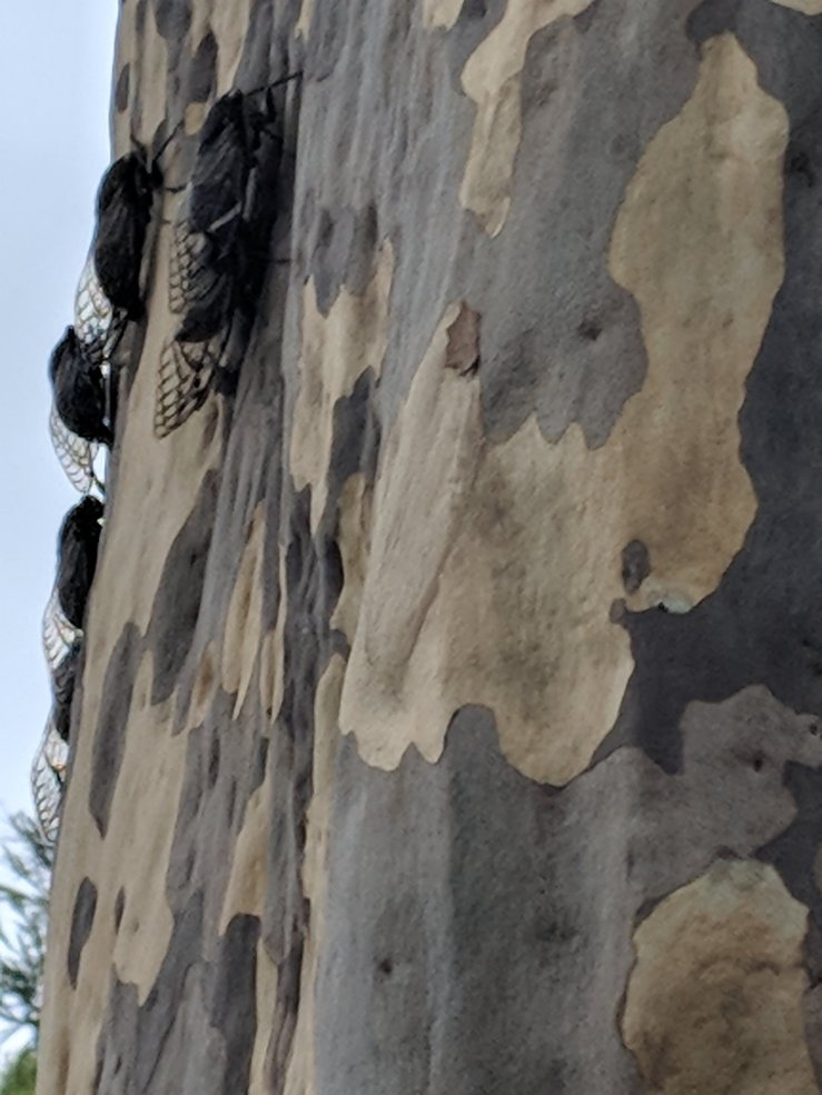 The neighborhood is a buzz with the yearly invasion of cicardas. We have a concerntration of black princes in our yard all congregating on this gum tree. Standing underneath you actually would get wet and it’s not raining!
